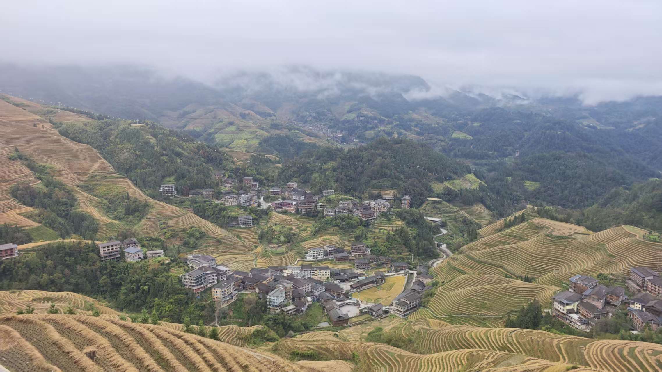 旅程首站,团队驱车前往龙脊梯田。春日灌水的梯田如链似带,层层叠叠,气势恢宏。徒步登山过程中,大家相互扶持,共同登顶观景台。这一寓意"步步高升"的攀登体验,恰与版石软件"持续突破、勇攀业绩高峰"的企业精神深度契合。北京事业部陈总分享道:"当看到壮族阿嫂们世代耕耘的壮美梯田,我们更理解了坚持与积累的力量。"
