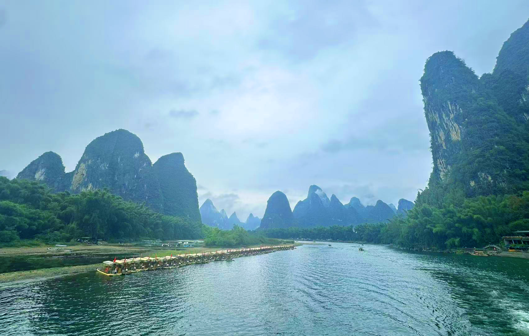 次日,团队乘船游览漓江精华段。烟雨朦胧中,九马画山、黄布倒影等经典景致如画卷般展开。成员们寄情山水,在甲板的观景台上交流心得,将业务攻坚的坚韧精神与漓江水的百折不回相映照。KA事业部马总表示:"漓江的每一道弯都像是市场挑战,需要我们以智慧和毅力去穿越。"